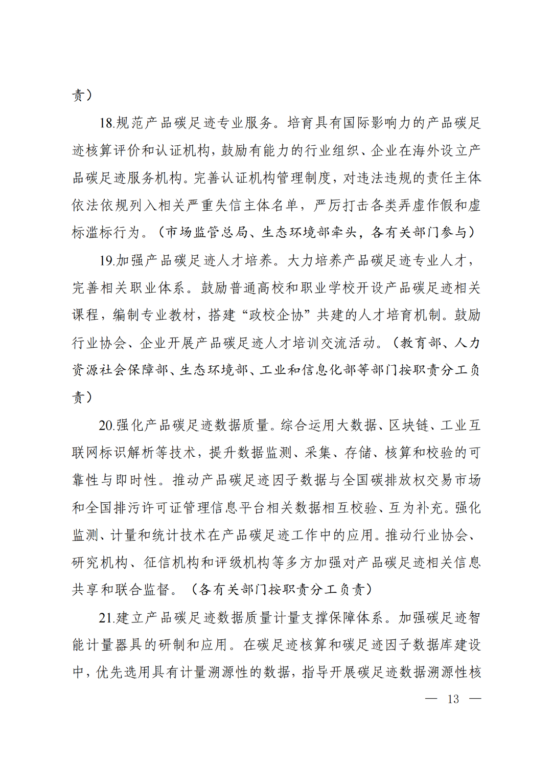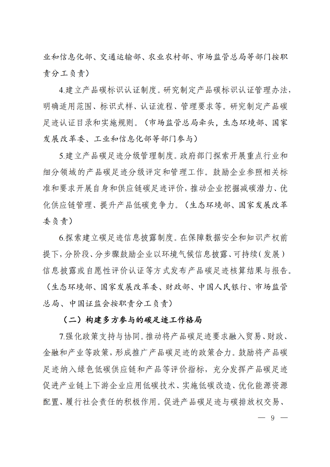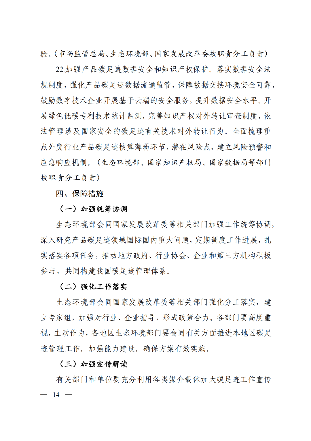 关于印发《关于建立碳足迹管理体系的实施方案》的通知
