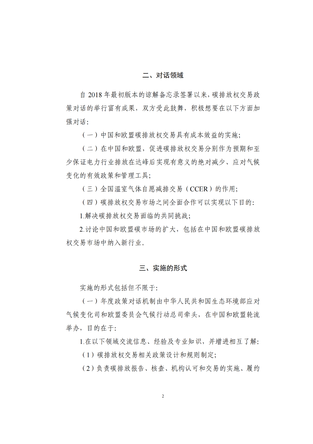 《中华人民共和国生态环境部和欧盟委员会关于加强碳排放权交易市场合作的谅解备忘录》