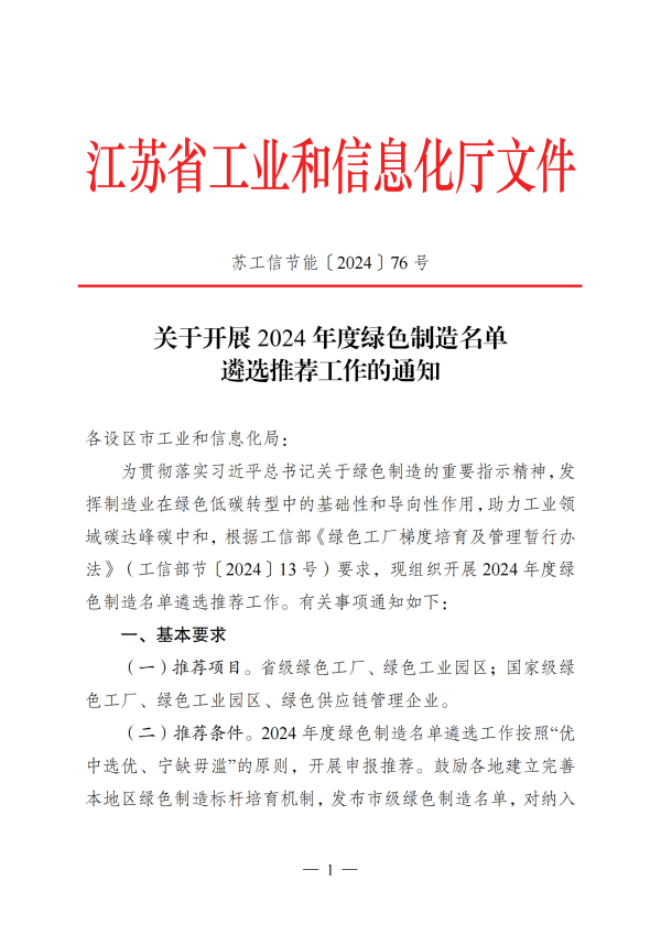 江苏省绿色制造名单申报要求