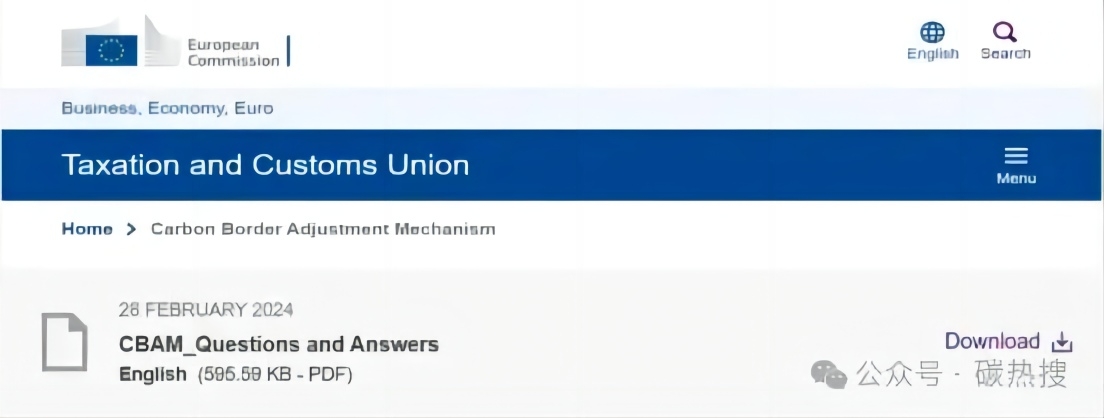 近日,针对第一阶段提交的CBAM报告填报情况,欧盟委员会于2024年2月28日在官网上更新了“CBAM常见问题与解答”文件。与上一版本(2023年12月22日发布)相比,该文件新增或修订常见问题共42个,CQC CBAM研究小组将涉及填报的部分重点问题进行了翻译整理,供读者参考。